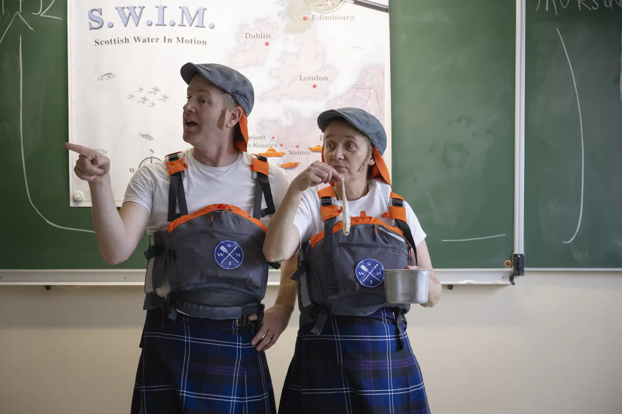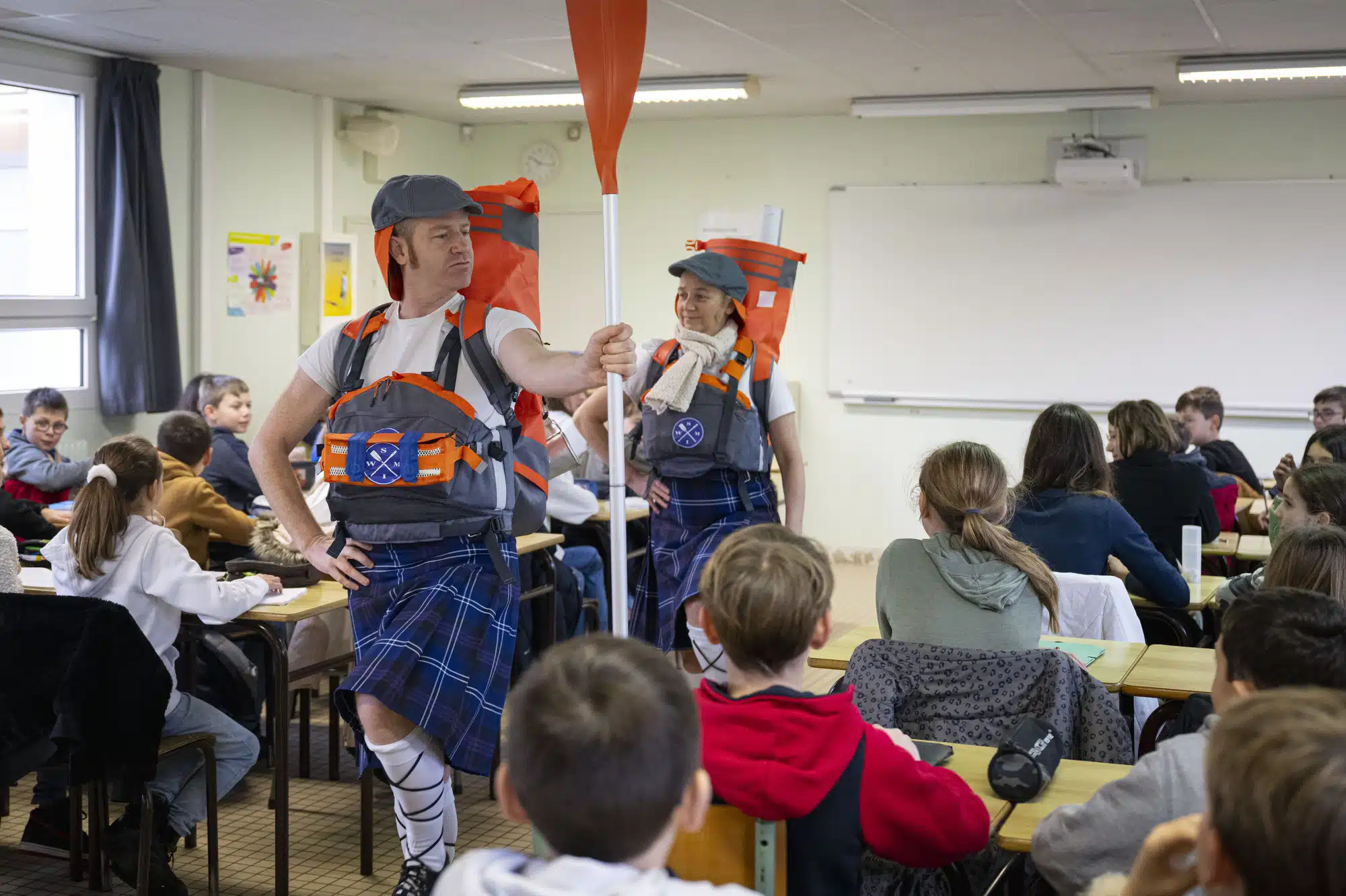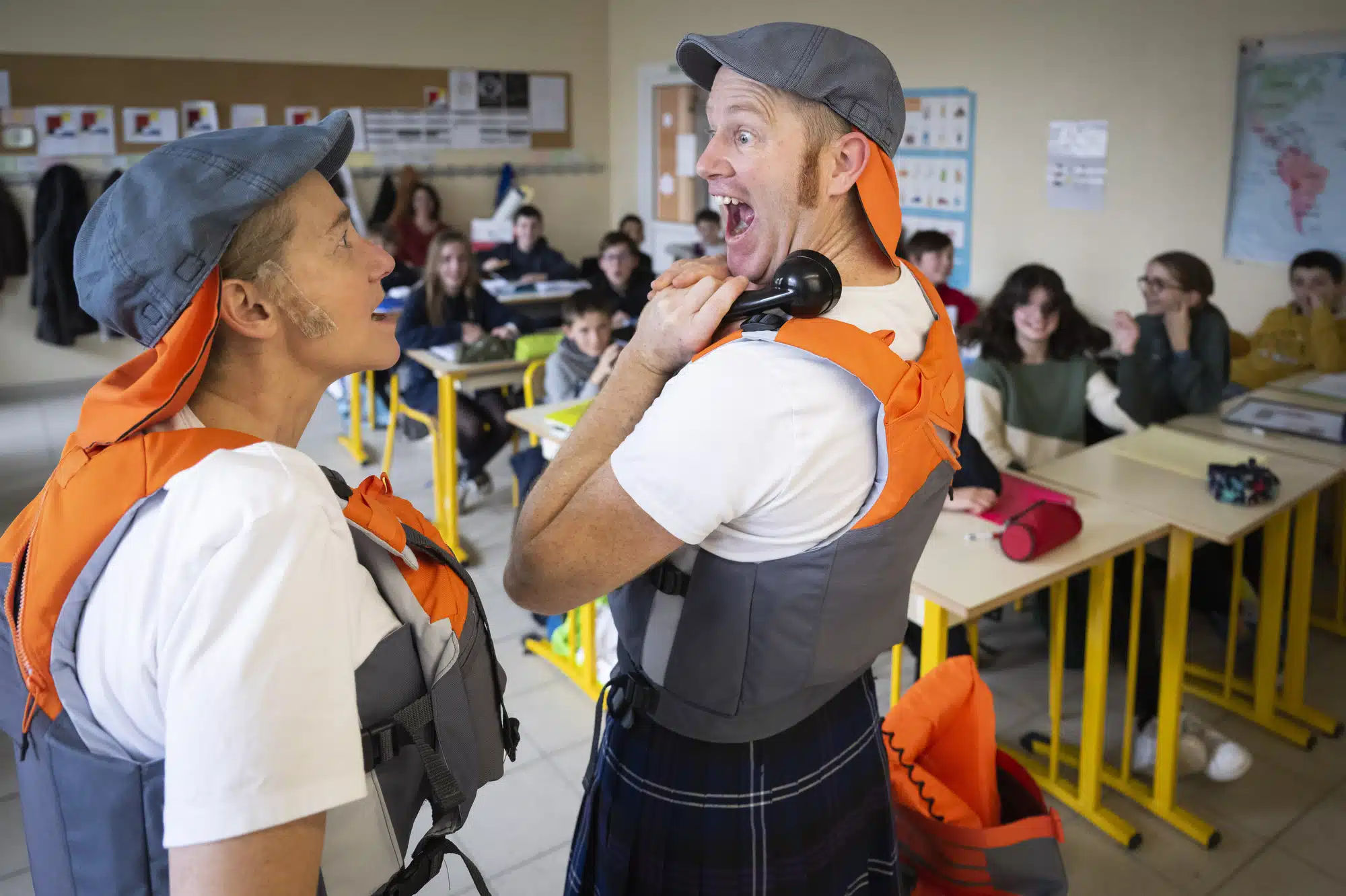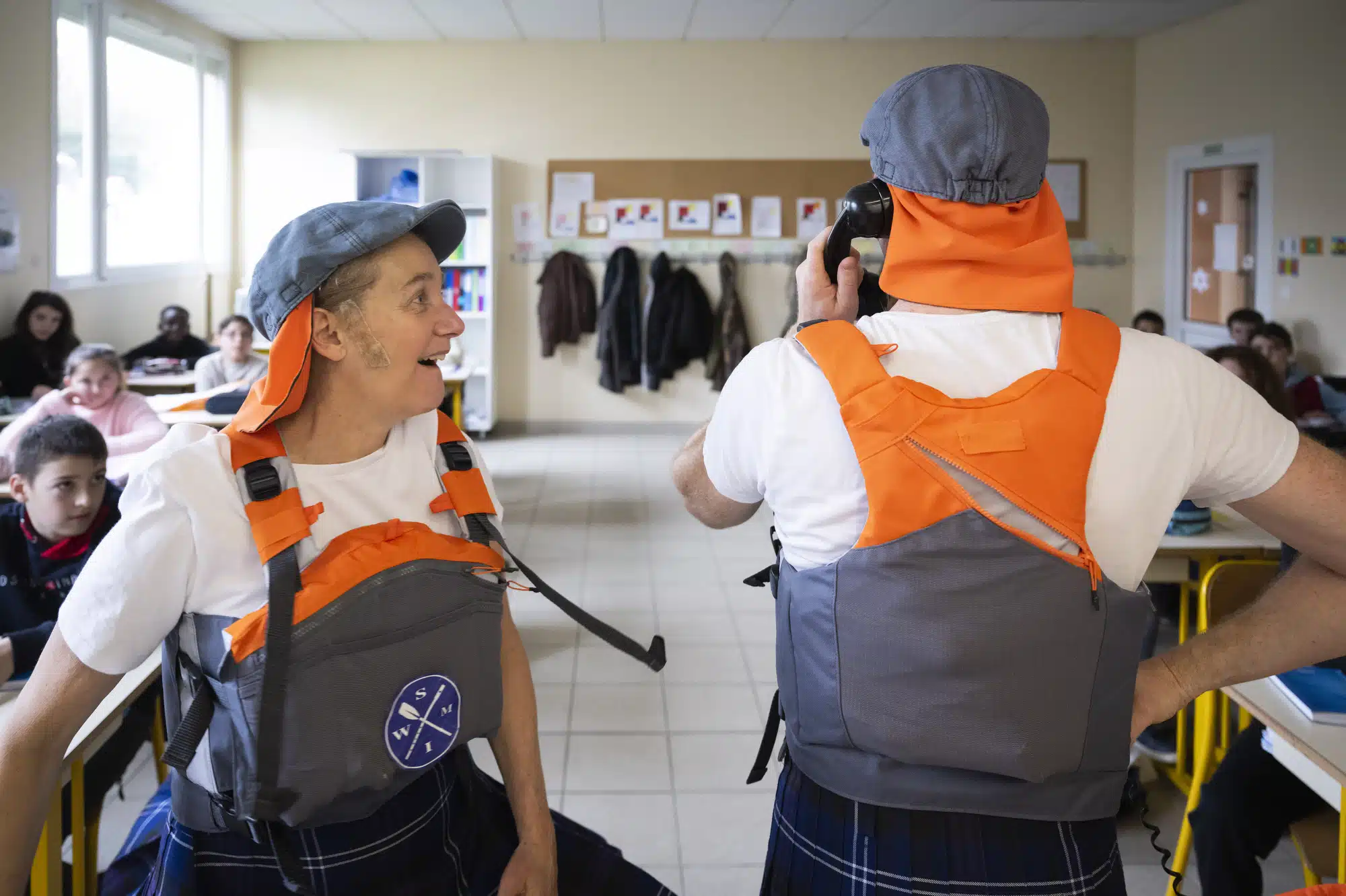 Le duo de choc est envoyé en tournée par le S.W.I.M. pour sensibiliser les français à la montée des eaux.